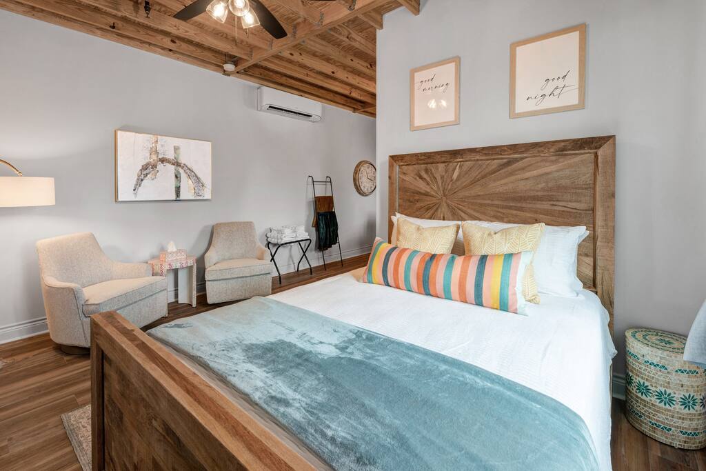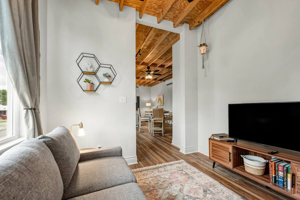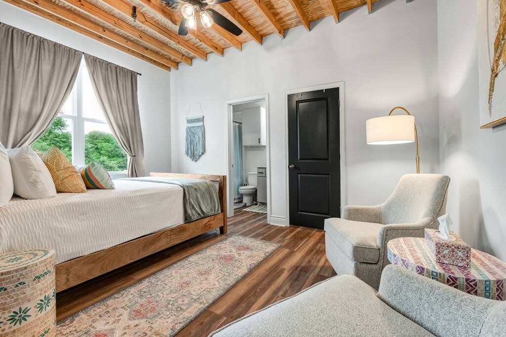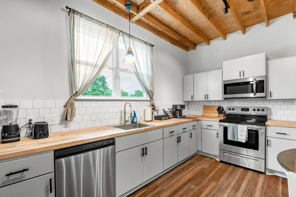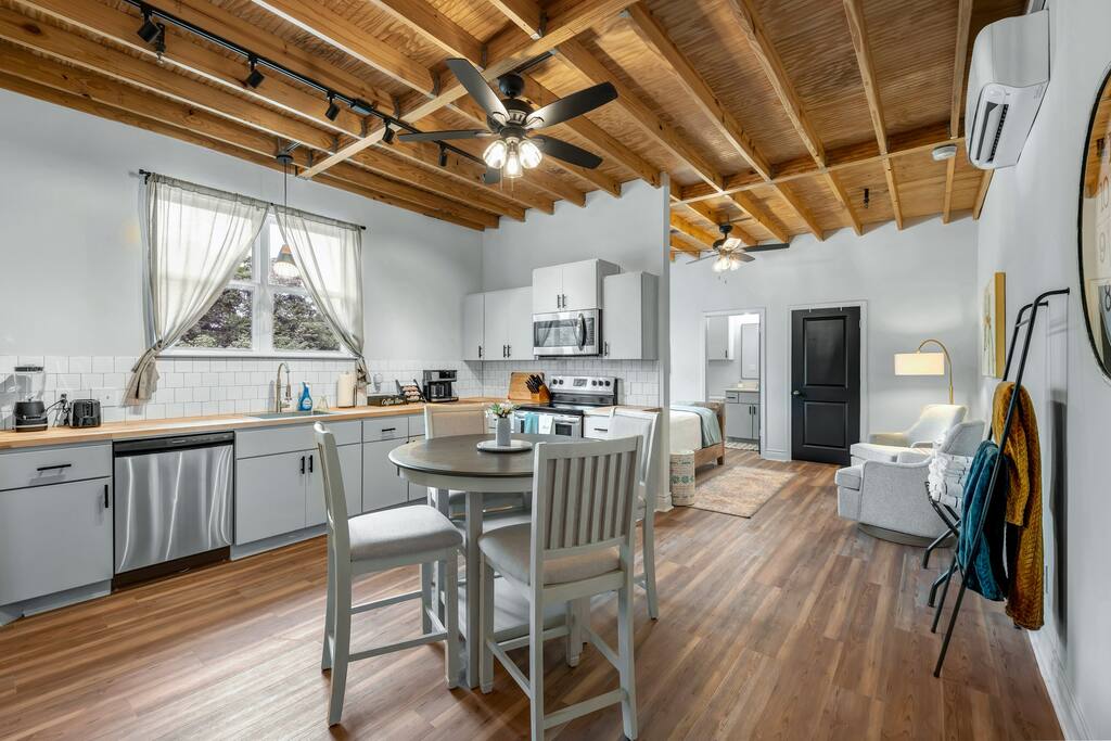 This is a second floor apartment with stair access only. The couch opens to a full-size bed. Easy walking distance to downtown and the historic Kyle House, home of Polite Coffee company with its coffee uniquely roasted in Bryan. Together with The Hideaway and The Magnolia Bloom apartments a family could have the entire second floor landing to themselves. A fully equipped kitchen and an in-apartment washer and dryer make this more than a sleepover. The TV has Netflix, Hulu Live, Disney Plus and even ESPN for when you just feel like relaxing as well. Pack N Play available upon request. There is a "quiet zone" plan in place set by the city of Bryan for the train nearby. Occasionally, trains passing through may be loud. We offer white noise machines to mitigate the sound.